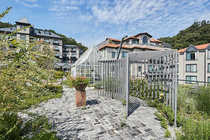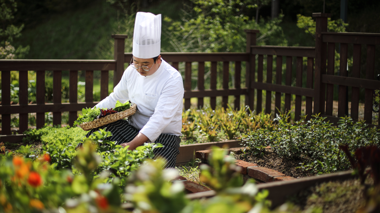 직접 기른 안전한 재료로 조리하는 음식. 키친&셰프 가든은 ‘팜투더테이블(Farm to the Table)’의 철학을 실현하는 작은 텃밭입니다. 텃밭에서 수확한 허브와 채소는 레스토랑과 티하우스 메뉴의 제철 식자재로 쓰입니다. 농부의 마음으로 직접 가꾸고 관리하는 키친&셰프 가든은 신선한 생명력을 느낄 수 있는 공간입니다.