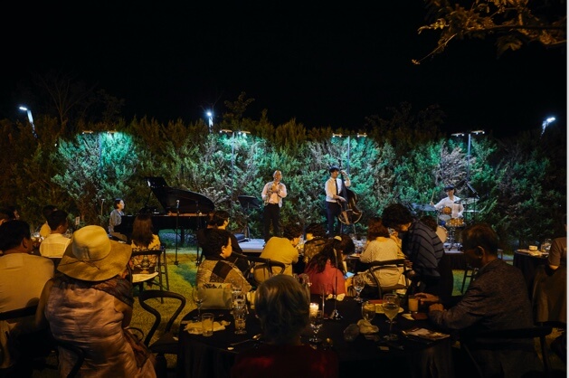 에스펠리어(Espalier) 가든은 이름 그대로 벽면을 나뭇가지로 엮은 공간입니다. 힘차게 뻗은 대왕참나무 가지로 뒤덮인 정원은 외부의 시선을 가려주는 것은 물론 비밀스러운 느낌마저 자아냅니다. 티하우스 근처에 있어 한가로운 티 타임을 즐기기에도 좋고, 아이들이 자유롭게 뛰어놀 수도 있습니다. 야간에는 별도의 조명으로 더욱 감성적인 분위기를 자아냅니다.