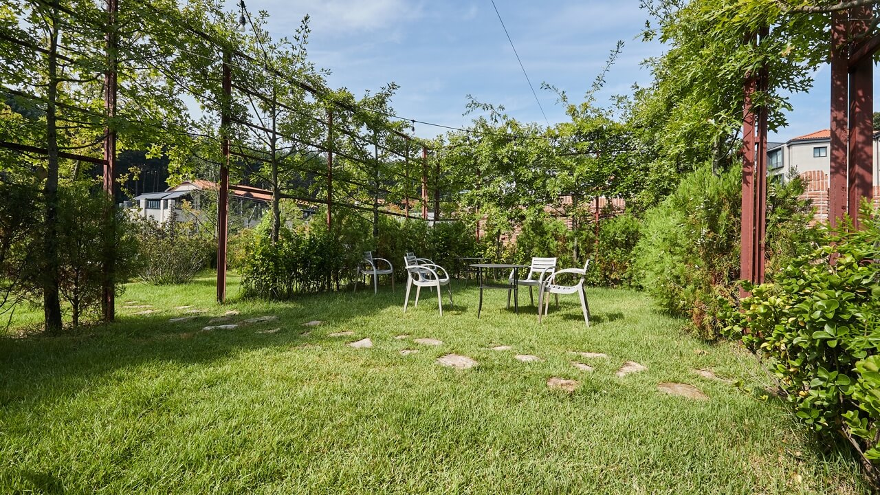 산사나무가 안내하는 길 끝에 마련된 벤치에서는 내면의 소리에 집중할 수 있습니다. 이 사려 깊은 벤치는 누구에게도 하지 못했던 이야기, 할 수 없었던 이야기를 꺼낼 수 있게 도와줍니다. 벤치 사이에서 청명하게 흐르는 분수대의 물소리도 건조했던 마음을 촉촉하게 적셔줍니다.