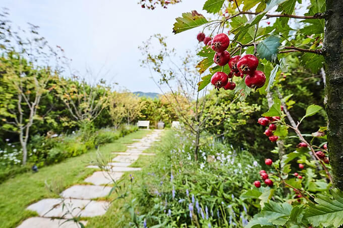 스위트 가든의 여름은 달콤한 블루베리와 산앵두의 달콤한 향기로 정신이 혼미해질 지경입니다. 특히 정원에서 직접 재배한 유기농 블루베리는 티하우스의 스콘과 레스토랑의 디저트 재료로 쓰입니다. 여름의 향기를 가득 담은 최상급 과실을 직접 보고 느낄 수 있는 정원입니다.