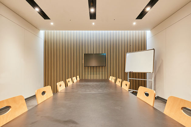 10명 내외의 인원을 위한 다기능 미팅룸입니다. 적은 인원이 외부의 방해 없이 조용한 시간을 보낼 수 있습니다. 세미나나 워크숍 등이 끝난 후 간단한 미팅을 하거나 가족 간 대화의 시간을 가지기에 적합합니다. 미팅룸 소망은 카페동 1층에 위치한 아트라운지, 라이브러리와 이어집니다.