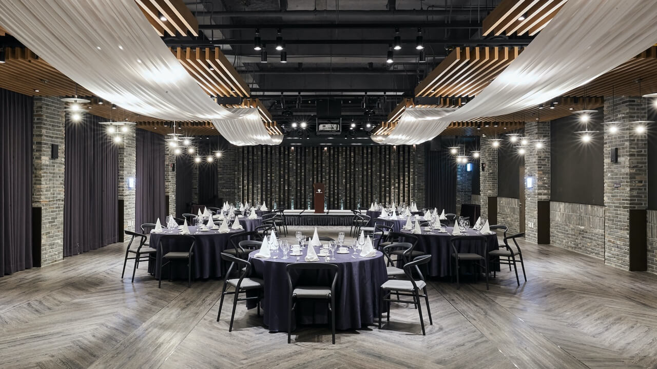 에덴볼룸은 무대와 조명, 음향 등에 최첨단 시설과 시스템을 갖췄습니다. 결혼식을 비롯해 기업의 신제품 발표, 임직원 디너 등 다양한 대규모 행사를 진행할 수 있습니다. 기존 특급호텔처럼 행사 목적에 맞게 테이블 형태와 배치를 달리 할 수 있어 세련된 분위기 연출이 가능합니다.