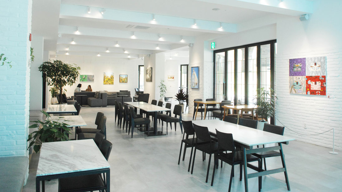 통유리 너머로 에덴가든을 감상하며 차 한 잔의 여유를 즐길 수 있는 무인카페 겸 예술 공간입니다. 국내외 유명 작가들의 작품 전시와 대형 LED 미디어월을 통한 미디어 아트 감상까지 쉼과 예술이 공존하는 공간입니다